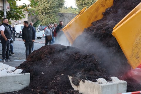 L’échéance de paiement de cette TFNB étant fixée au 15 octobre, une centaine de vignerons s’est réunie ce matin devant les locaux de la Direction départementale des finances publiques (DDFIP) de Carcassonne pour « remettre un coup de pression pour un dossier qui traîne alors que nous avons effectué notre demande depuis juin », appuie le président du SVA. Au menu donc, des tracteurs, des tas de souches et de pneus brûlés et une benne de marc déversée devant les locaux du centre des finances publiques carcassonnais, sans débordement et encadré par les forces de l’ordre.