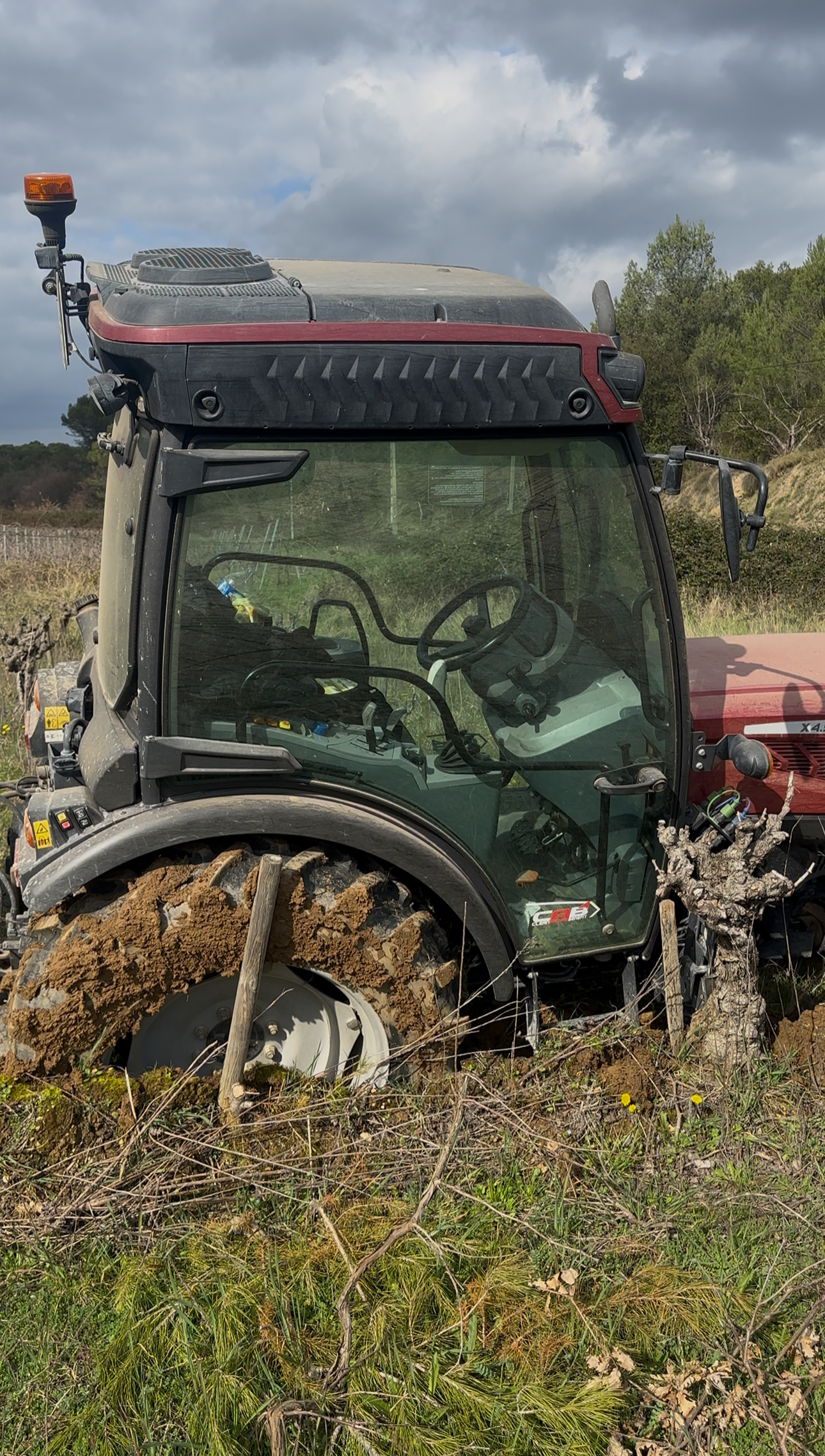 Le tracteur de Pauline Pradier s'est littéralement enfoncé dans la terre mouillée. Photos : domaine de Vallaurie.