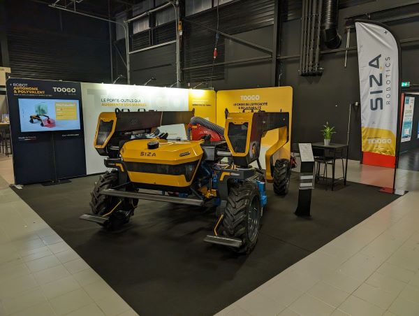 Pragmatique, le voisin aveyronnais Siza Robotics dévoile au Sival puis au Fira son robot Toogo multifilières. Utilisable en vignes larges, cet engin autonome électrique dispose d’une voie variable allant d’1,5 à 2,2 m. Autre signe distinctif, sa polyvalence. Il est sensé accepter les outils interligne du domaine pour attelage de catégorie 2, notamment pour semer, biner, exécuter un travail du sol superficiel ou son entretien. Sa capacité de levage atteindrait même 1,4 t ! Un autre point fort avancé par ce nouveau constructeur est le guidage des outils sur le porte-outil. Guidé par satellite et Lidar, et à motricité électrique, l’autonomie du robot Toogo atteindrait 12h, dans une version, au choix, deux ou quatre roues motrices. La vitesse d’avancement dans les rangs pourrait atteindre voire dépasser les 5 km/h. Son poids resterait sous les 2 t pour pouvoir être transporté sur remorque. Une première pré-série est en cours de commercialisation. Too good Toogo ?