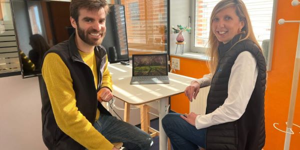 En photo : Caroline Schoenhenz, chef de lignes produits chez Camso/Michelin et Gaëtan-Séverac, co-fondateur de Naïo Technologies