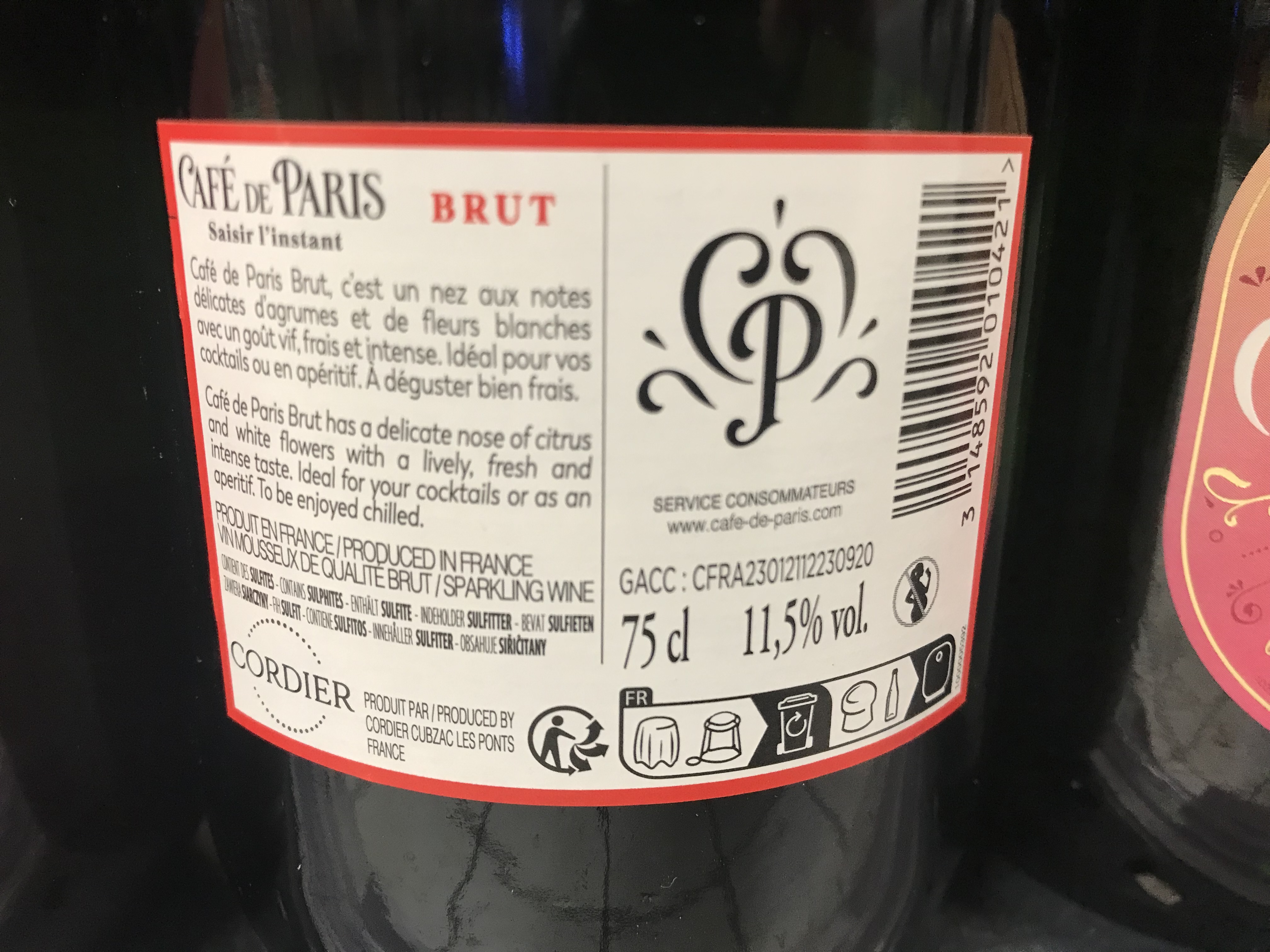 Alors que ses principaux concurrents sur le segment des vins mousseux, Kriter (groupe Castel) et Charles Volner (Compagnie Française des Grands Vins) affichent un sourcing 100 % français dans les vins de base (mention "produit de France"), la marque Café de Paris (négoce Cordier, filiale du groupe coopératif InVivo) est dans le viseur d’un certain nombre d’opérateurs de la filière vin avec les drapeaux bleu-blanc-rouge de certaines cuvées et cette image parisienne bien éloignée de ses approvisionnements de vins de base. Si Cordier n’a pas donné suite aux multiples sollicitations de Vitisphere, il se dit que la marque Café de Paris utiliserait moins de 50 000 hectolitres de vins, majoritairement espagnols et italiens.