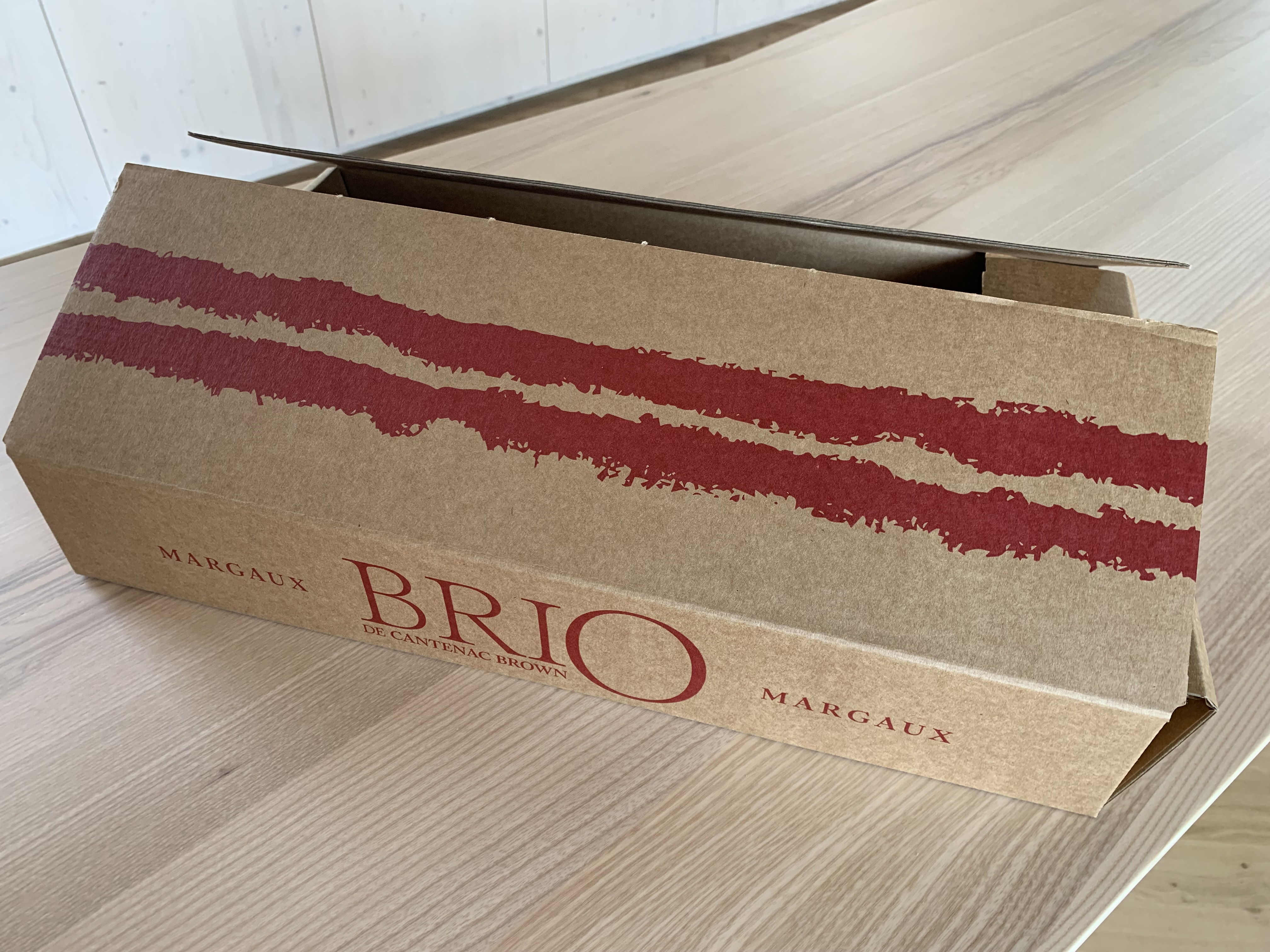 Les gammes du château Cantenac Browne se dotent de nouveaux cartons pour reprendre la signature des lignes rouges (ici en peinture à l’eau).