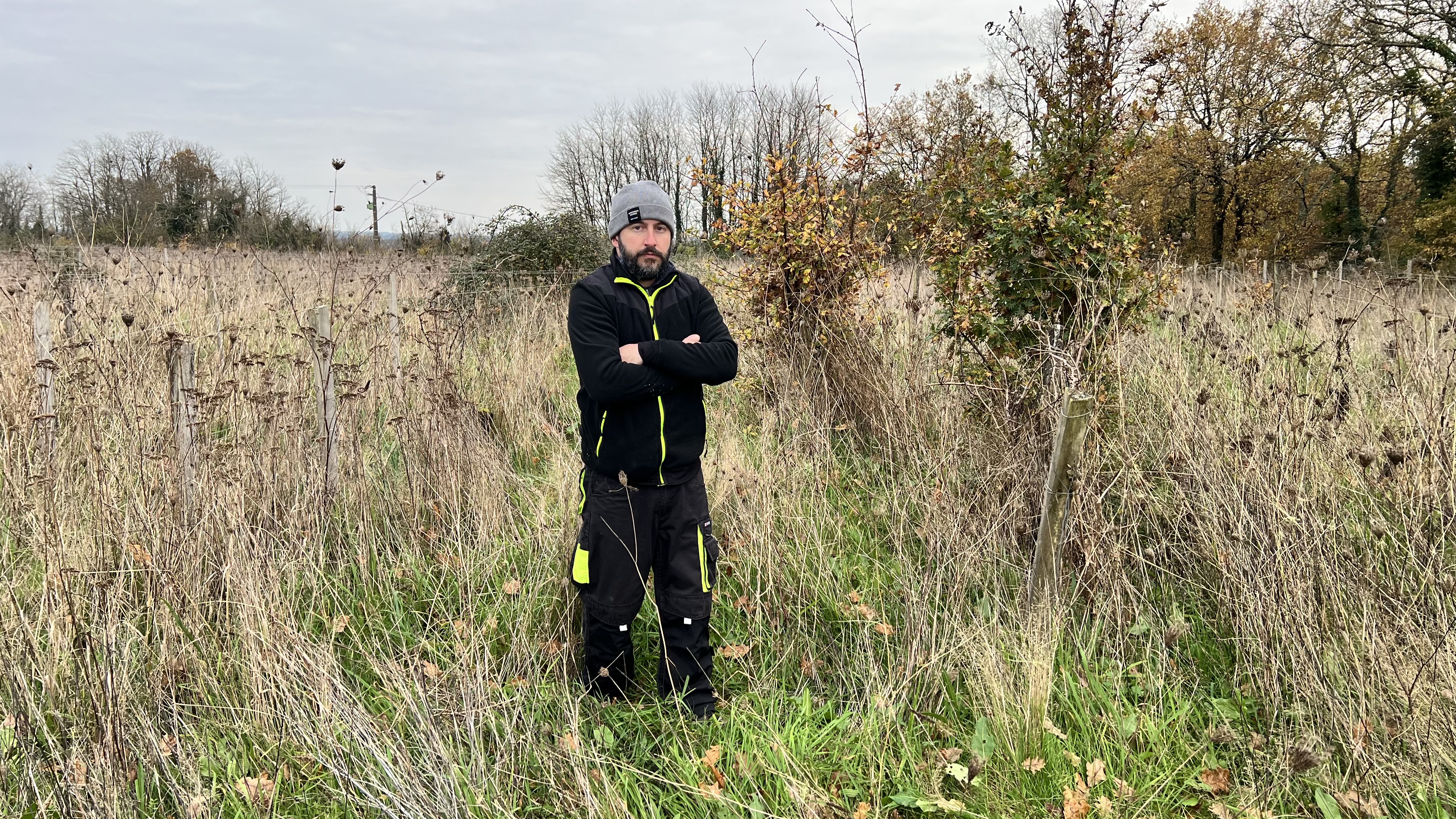Jérémy Brun et les vignes abandonnées cet hiver 2024. DR