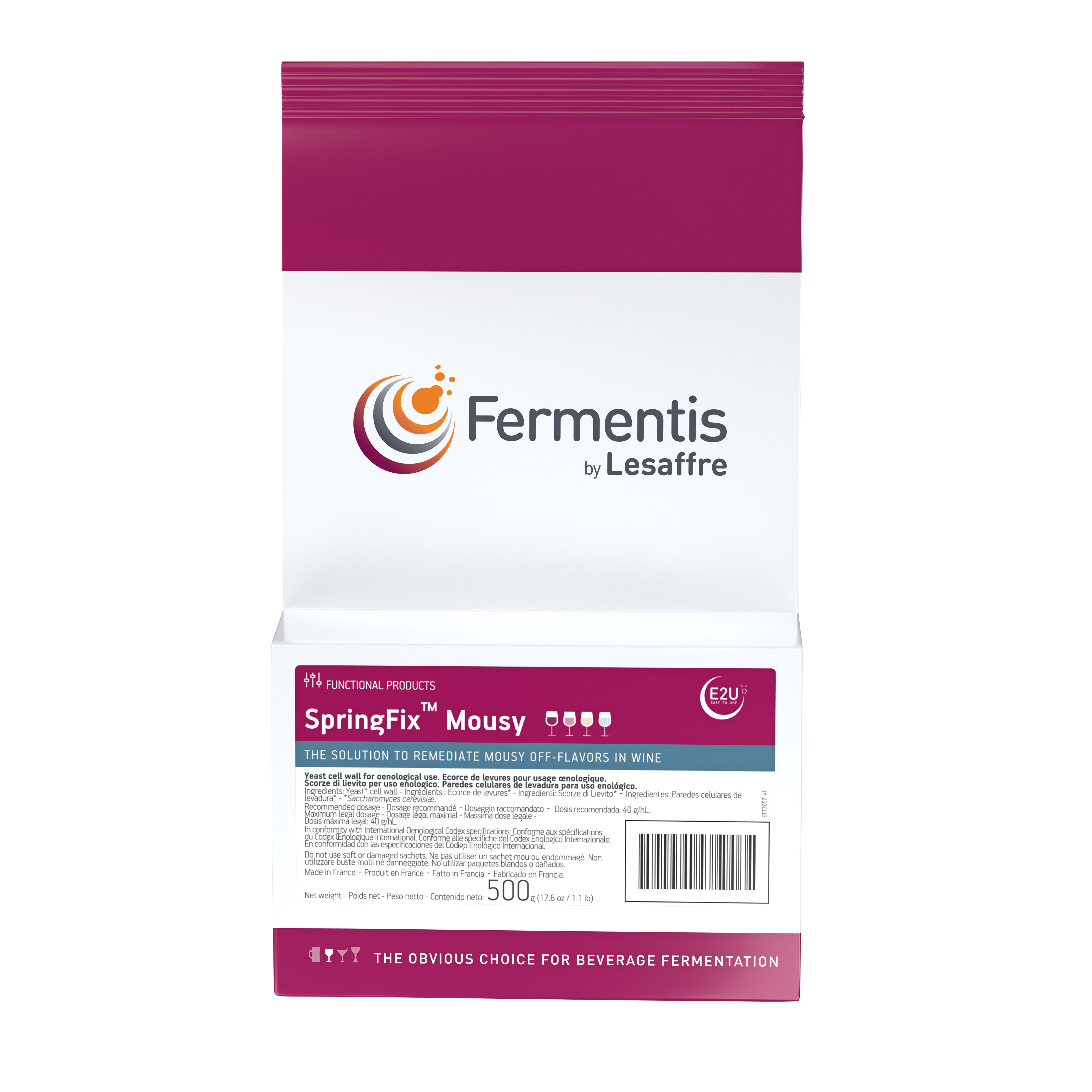 Fermentis sort Spring Fix Mousy, des écorces de levures capables d’atténuer le goût de souris. « Ces écorces absorbent l’ATHP, l’une des principales molécules responsables du goût de souris sans impacter le profil organoleptique du vin, explique Nathan Wisniewski, directeur des ventes chez Fermentis. Elles s’utilisent en curatif, entre 30 et 40g/hL, sur des vins déjà contaminés ». Pour cela, il suffit de les disperser sur le vin et d’attendre au minimum deux jours pour qu’elles sédimentent et adsorbent la molécule indésirable. A noter : Spring Fix Mousy fonctionne davantage lorsqu’on l’emploie dès l’apparition du goût de souris.