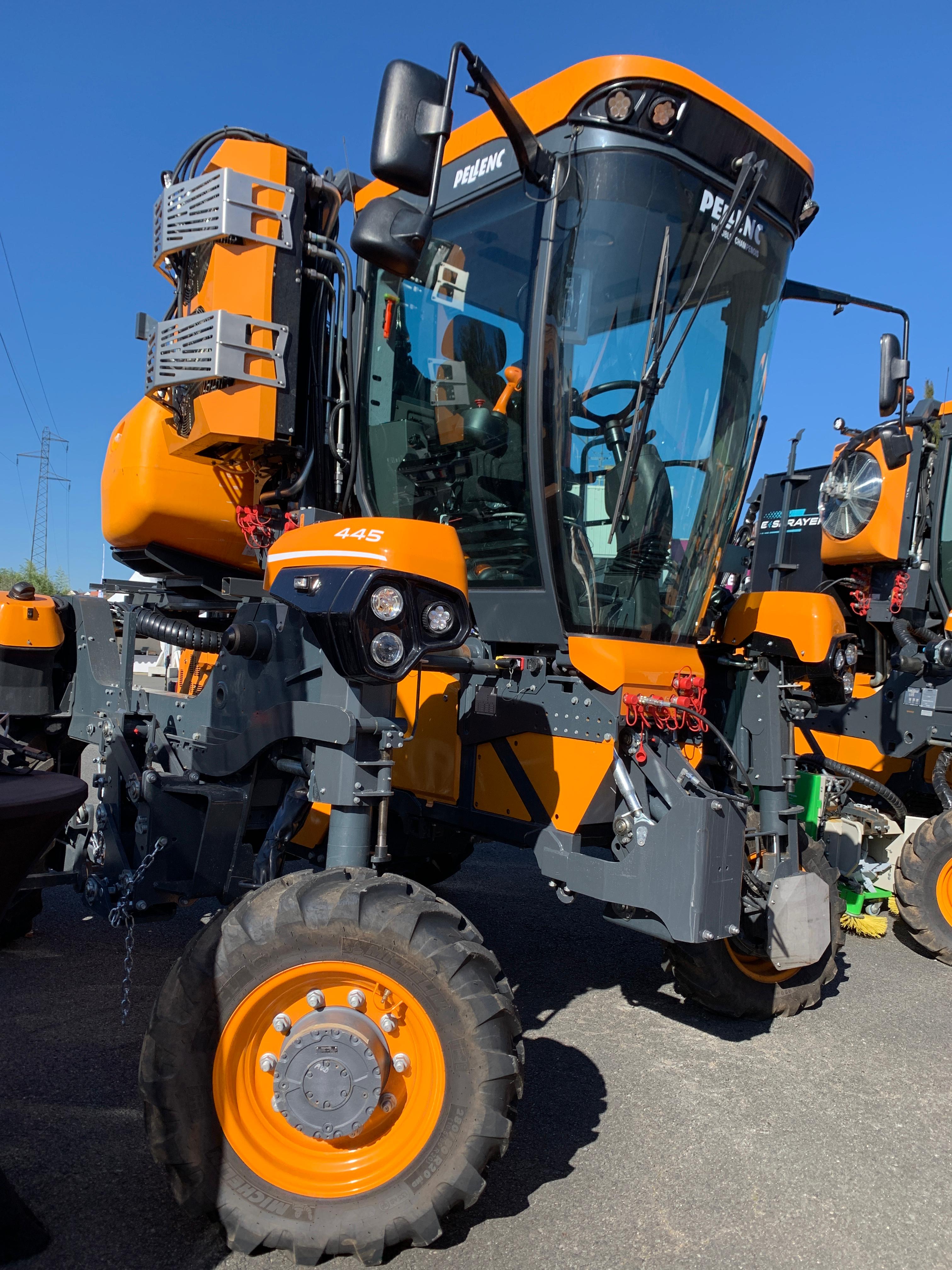 Nouveau gros modèle chez Pellenc : le porteur polyvalent 445. Il est le digne petit frère du 345 mais rallongé de 30cm, afin de s’attaquer plus facilement aux fortes pentes. « Avec ses 217 chevaux, les coteaux et les outils gourmands en puissance ne lui font pas peur ! » explique Cyril Carlot, directeur commercial Pellenc Bourgogne. Ce porteur possède 4 pompes hydrauliques (130 L/min, 2 fois 55L/min et une à 30L/min) et jusqu’à 12 distributeurs hydrauliques. La voie est variable pour travailler dans des vignes plantées entre 0,9 et 1,60 m.