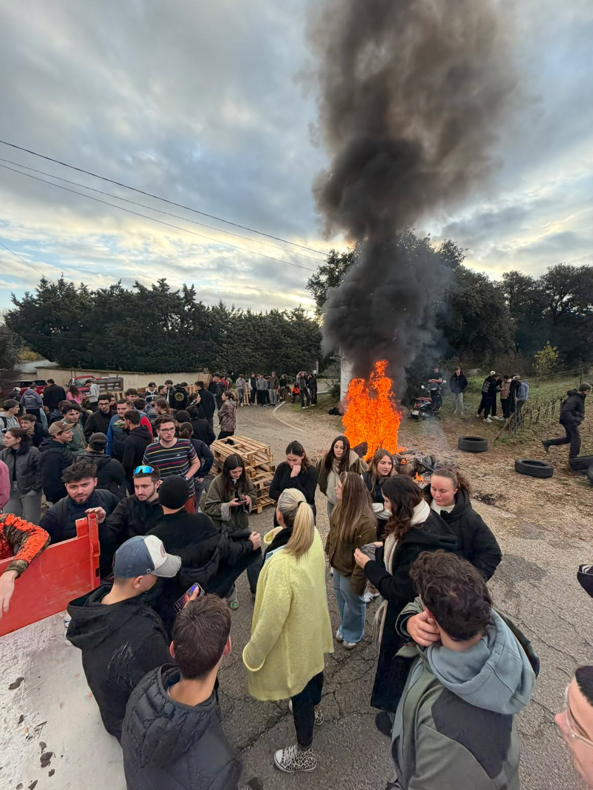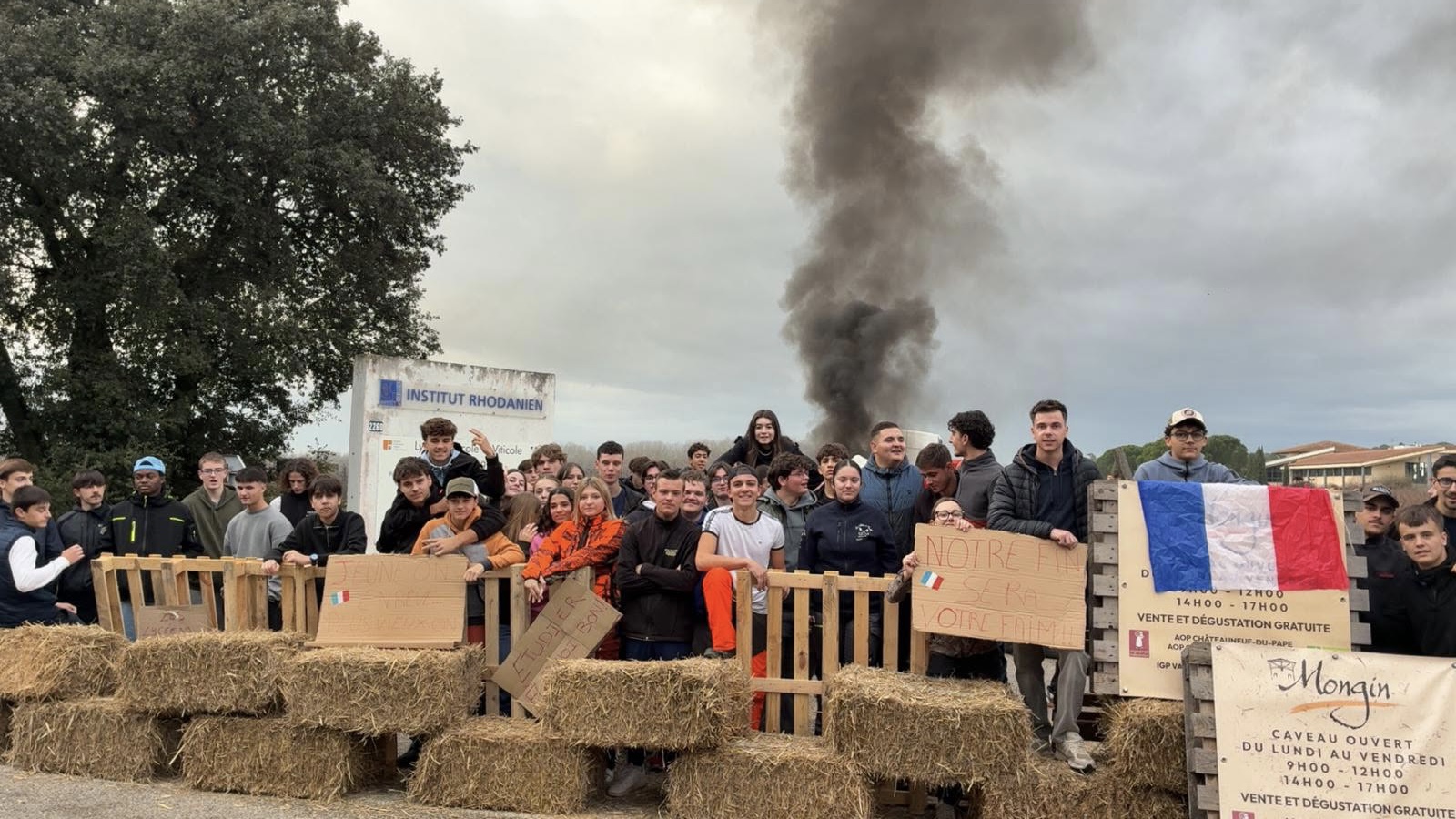 es raisons de manifester la colère agricole ne manquent pas cette fin d’année : remise en cause de la gestion sanitaire de la Dermatose Nodulaire Contagieuse (DNC), rejet de l’accord commercial du Mercosur (dont l’examen européen est reporté à janvier), mais aussi la réforme budgétaire de la prochaine Politique Agricole Commune (PAC), l’augmentation du prix des engrais avec le Mécanisme d'Ajustement Carbone aux Frontières (MACF)… Et la crise viticole, comme en témoignent les élèves du lycée agricole Pierre Le Roy de Boiseaumarié à Orange (Vaucluse). Ce jeudi 18 décembre, une centaine de lycéens et BTS se sont mobilisés dès l’aube selon les élèves pour mettre en place un barrage filtrant à l’entrée de l’établissement. Venant de sept classes, de la seconde au BTS en passant par les alternants, « nous étions le quart des 400 apprenants du lycée. Nous avons bloqué la route qui mène au lycée, en laissant passer les livraisons de produit frais pour la cantine, les élèves et profs n’avaient pas accès au parking, mais pouvaient se garer à côté pour venir à pied, le but n’était pas d’empêcher l’accès » rapporte Morgue Evan, élève en terminale en bac pro pour la conduite et la gestion d’une exploitation vitivinicole.