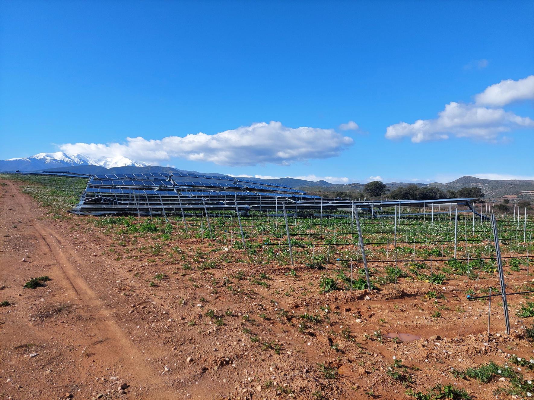 armi les impressionnants dégâts causés par la tempête Nils le jeudi 12 février, en voici un inédit à l’échelle du vignoble français : l’affaissement sur de panneaux photovoltaïques dynamiques sur un hectare de jeunes ceps de carignan, plantés à Terrats (Pyrénées-Orientales) en janvier 2025 dans une parcelle expérimentale de 6,5 ha (3,5 ha de panneaux solaires au-dessus de la culture et 3 ha de vigne témoin). Ce mois de février, « la structure s’est écroulée, elle est tombée au sol comme un château de cartes. Les pieux* ont plié sous la force du vent et tout est tombé » rapporte Jonas Dubois, le chef d’exploitation du domaine Solaspres (groupe Nos Terroirs solaires), décrivant une structure de panneaux solaires en hauteur, à 5 mètres pour laisser passer les engins viticoles d’envergure (comme les machines à vendanger).