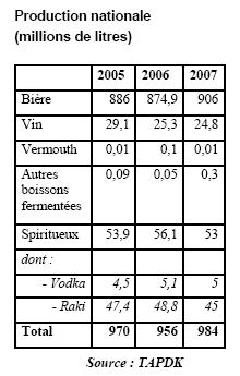 D’après les chiffres du TAPDK, la production de boissons alcoolisées en Turquie était de 984 millions de litres en 2007, en hausse de 3% par rapport à 2006.