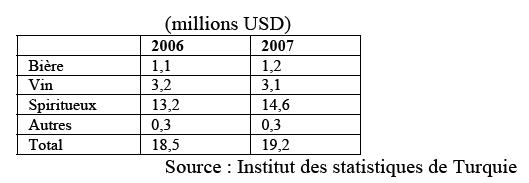 Tableau 2 : Importation de boissons alcoolisées en Turquie