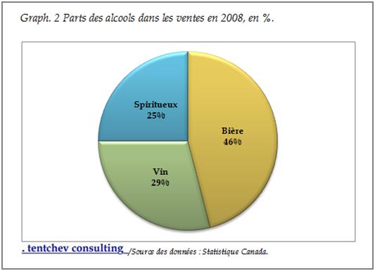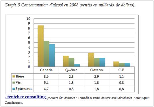 Selon les chiffres des statistiques canadiennes sur la vente des boissons alcoolisées, pour l'année se terminant au 31 mars 2008, ce marché est estimé à 18,8 milliards de dollars, avec une hausse de 4,3 % sur l'année précédente.