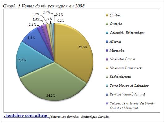 Sur les dix provinces canadiennes et les trois territoires, quatre (Québec, Ontario, Colombie Britannique et Alberta) concentrent 92,5% des ventes de vins.