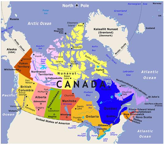 Le Canada est situé dans la partie nord du continent Nord-Américain.
