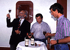 Photo (www.capdemerle.com) : les experts dégustent, avec Alain Bel au centre et Jean-Marie Bel à droite.