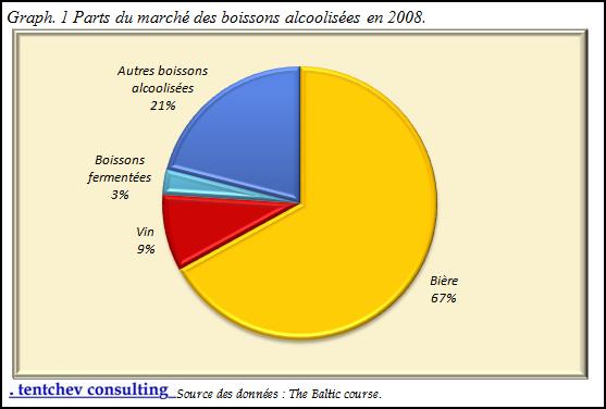 Les boissons importées représentent environ la moitié du marché des boissons alcoolisées. Dernièrement, leur part dans les ventes a augmenté. En 2008, 51% des ventes ont été constituées par la production d’importation, contre 47% l’année précédente.