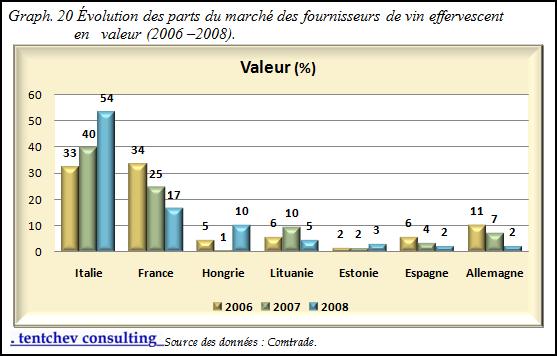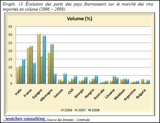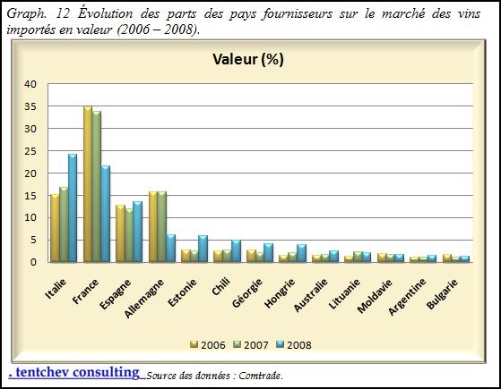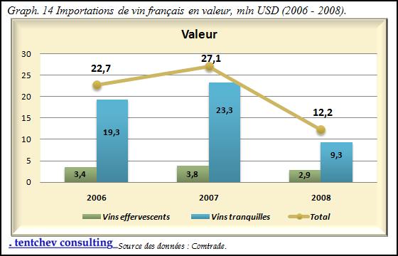 La perte des parts du marché par la France est en parallèle de la baisse des importations des vins français au cours de la période 2006 - 2008. Les vins français bénéficient d’une très bonne image liée à une garantie de qualité, mais ils semblent être assez chers. Sur le segment "haut de gamme" les vins français, bien qu’en tête du classement, souffrent de la concurrence des vins italiens. Avec la crise économique qui a commencé à se faire sentir en 2008, les consommateurs s‘orientent vers les produits moins chers. Les vins de qualité supérieure restent demandés par l’hôtellerie et la restauration, mais c’est justement ce secteur qui souffre le plus de la baisse du pouvoir d’achat des Lettons. En résultat, les importations de vin français ont diminué plus de deux fois en valeur et en volume en 2008 par rapport à 2007.