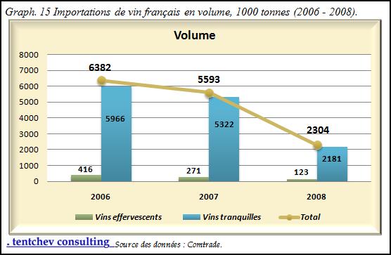 L’augmentation des importations de vin en volume a été moins spectaculaire, d’uniquement 2,4 fois, et suit le changement du gout du consommateur vers des produits plus raffinés.