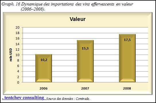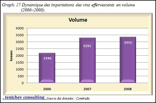 Les importations de vins effervescents n’ont pas cessé d’augmenter au cours de trois dernières années, atteignant 17,5 mln USD et 3355 tonnes en 2008.