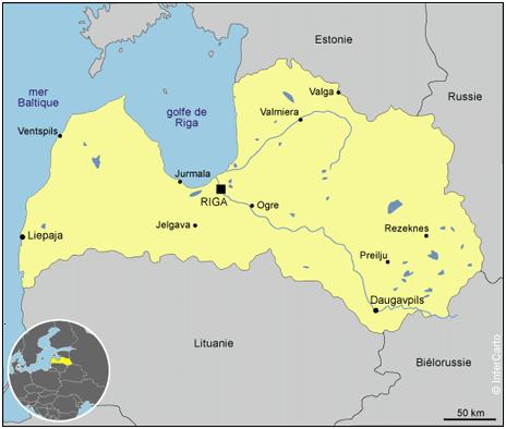 La Lettonie (Latvija en letton) est située sur les côtes est de la mer Baltique, au croisement des anciennes routes commerciales européennes et elle continue aujourd’hui à servir de pont entre l’Europe de l’ouest et la Communauté des Etats Indépendants.