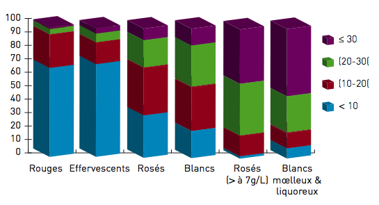 Sulfites et qualité préservée : les constats du Service Aval QualitéPar une étude de son service technique (Etienne Goulet, Charlotte Mandroux et Delphine Bonnaud), Interloire s’est penchée sur la corrélation entre teneurs en SO2 et qualité organoleptique des vins. Ce Service Aval de la Qualité (SAQ) s’est appuyé sur la dégustation et l’analyse de 900 références de vins du Val de Loire, achetés en mai et novembre 2010 en France. Les vins étudiés étaient de toutes les couleurs (rouges, blancs, rosés), de tous les types (tranquilles, liquoreux et mousseux), du millésime 2008 ou 2009, de diverses modalités viticoles (viticulture conventionnelle ou biologique) et ont été prélevés dans les principaux circuits de vente (grande distribution, à la propriété, caviste, grossiste et hard discount).
