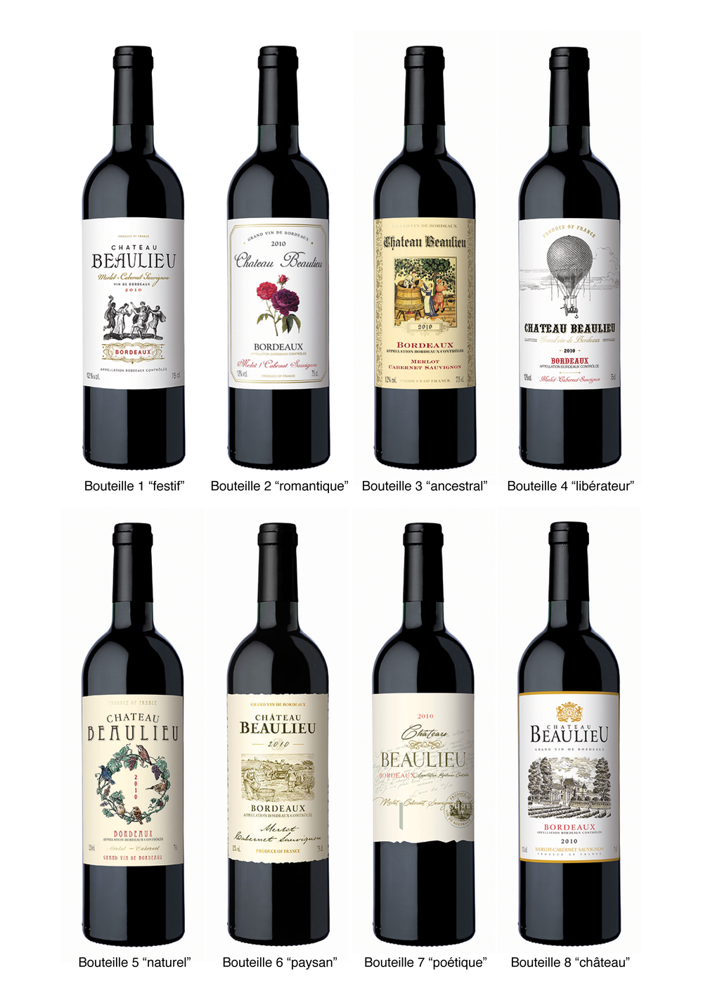 ans un contexte d’« hybridation » des cultures mondiales qui évoluent en fonction des réalités locales, les auteurs de l’étude* affirment que certains attributs visuels sur le packaging du vin sont plus lisibles que d’autres lorsqu’ils sont transposés à d’autres cultures. Qu’il s’agisse du texte écrit, des couleurs, de la typographie, des images, des motifs ou de l’ornementation, chaque élément communique des messages tels que l’identité, les valeurs ou la promesse d’une marque, même si tous doivent être considérés comme faisant partie d’une « structure de signification organisée hiérarchiquement ». L’étude a été ventilée en trois parties et porte aussi bien sur des consommateurs chinois de vins importés que sur des non consommateurs. Elle a cherché à analyser l’idée selon laquelle certains choix graphiques sont « motivés », c’est-à-dire que leur signification repose sur une certaine logique et peut donc être comprise par une autre culture, tandis que d’autres sont « arbitraires » et traverseront plus difficilement les frontières. Huit étiquettes de vins importés conçues par un graphiste français devaient communiquer des valeurs désormais fréquemment associées au vin en Chine : le vin « festif », « romantique », « ancestral », « libérateur », « naturel », « paysan », « poétique » et le vin de « château ». La forme de la bouteille, bordelaise, et sa capsule noire étaient identiques.