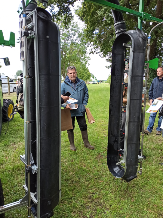 Jusqu’au troisième traitement, il y a ajouté deux panneaux mobiles aux extrémités pour récupérer les effluents de phytos et les réintégrer à la bouillie.