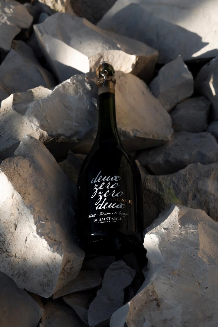 Même son de cloche à l’Union Champagne (Champagne de Saint-Gall) qui vient de lancer son dernier millésime « Orpale 2002 » (150 €, photo ci-dessous) :