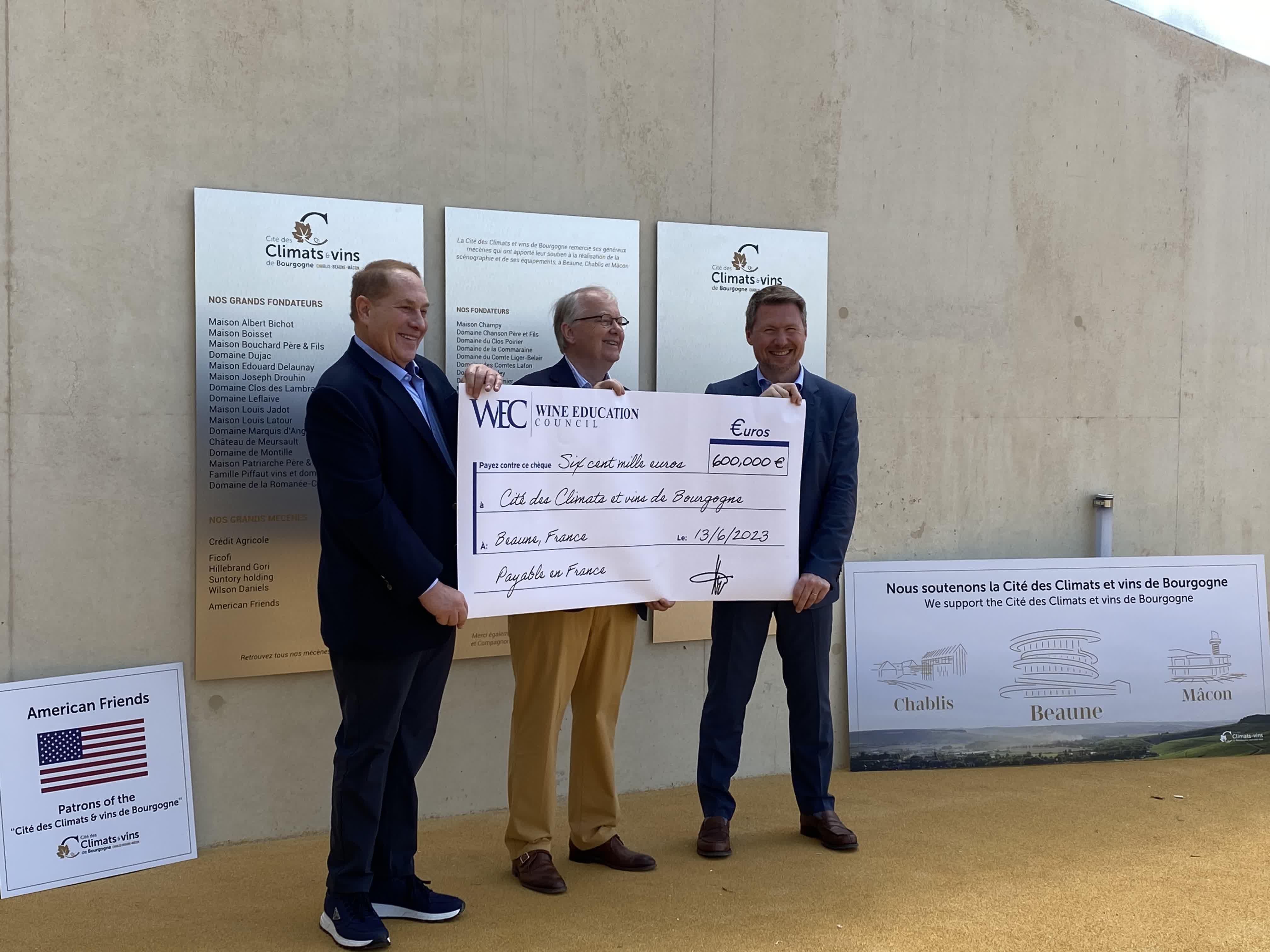 Ils sont négociants ou vignerons bourguignons, mais pas seulement. Un groupe de donateurs américains, via des dîners de charité menés sous la houlette de l’importateur texan John Winthrop et fondateur du Wine Education Council, ont levé plus de 850 000 € dans l’espoir d’atteindre 2 millions d'euros d’ici fin 2025. “C’est une façon pour nous de soutenir l’éducation du vin au travers du réseau de cités et de rendre hommage à la Bourgogne pour tout ce qu’elle nous a apporté en 40 ans de collaboration”, selon l’importateur.