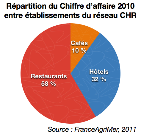 Si 75 % des gérants de CHR déclarent que leurs activités ont pâti de la crise entre 2008 et 2010, l’enquête « observe une progression du chiffre d’affaire de l’ensemble du secteur ». En réalité, cette augmentation des recettes serait principalement due aux hôtels et restaurants, tandis que les autres commerces (cafés, pubs, discothèques...) voient plutôt leurs chiffres d’affaire diminuer. En moyenne, la part des ventes de vin dans le chiffre d’affaire est de 19 %, ce qui est équivalent aux résultats de 2009.