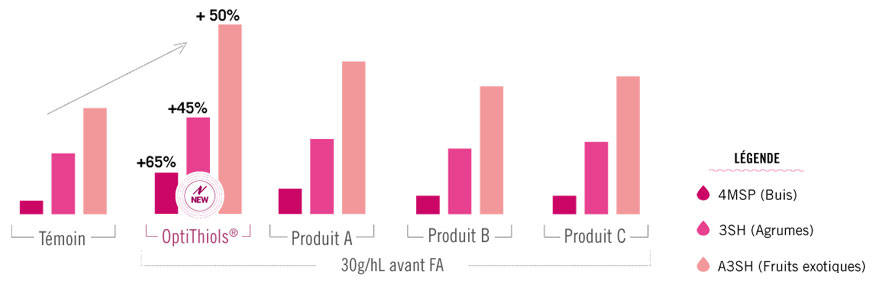 L’apport d’OptiThiols® permettra d’optimiser la révélation du potentiel thiol tout en augmentant le pouvoir anti-oxydant nécessaire pour démarrer l’élevage sereinement.