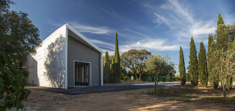 La climatisation passive par ouverture nocturne des skydômes contribue à l’optimisation énergétique du chai.