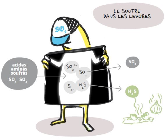 Comme pour le SO2, le H2S dépend du métabolisme de la levure, qui peut en libérer jusqu’à 107,5 μg/L dans le milieu. Cette production dépend encore une fois du choix de la levure, mais aussi du type de nutrition utilisé. Un excès de DAP peut être défavorable, contrairement à un nutriment organique à base de levures inactivées.