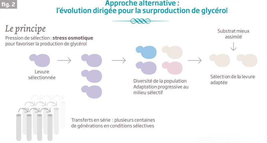 La levure IONYSWFTM est le résultat d’un projet de recherche commun entre la société Lallemand et l’Institut National de la Recherche Agronomique (INRA) de Montpellier. Le but de cette collaboration était de sélectionner une levure œnologique fortement adaptée aux changements climatiques, c’est à dire fortement productrice de glycérol et montrant ainsi un taux réduit de conversion du sucre en alcool. La stratégie utilisée, appelée « évolution adaptative», permet de générer progressivement des levures adaptées à des conditions de pression osmotique élevée (figure 2).