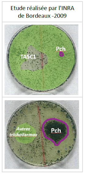 Les études ont été menées dans un premier temps au laboratoire dans divers pays : INRA de Bordeaux, Agrene à Dijon, Rheinlandpfalz (Allemagne), Université de Valencia (Espagne) … Elles ont consisté à vérifier l’antagonisme de la souche choisie vis-à-vis des principaux champignons pathogènes.