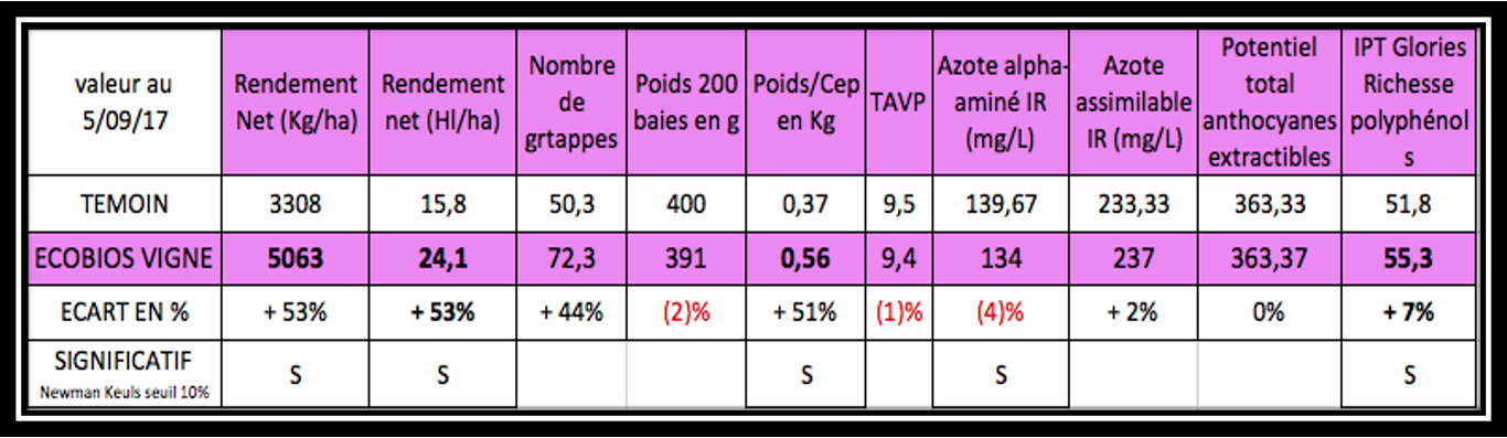 Les 2 rangs de gauche, traités ECOBIOS® VIGNE, ont bénéficié