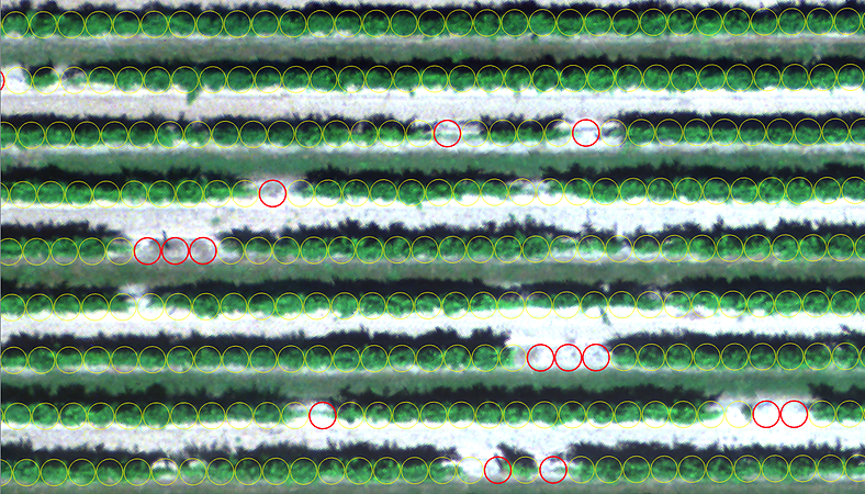 By filtering out cover crop and soil from the images, we are able to use PureVine to calculate canopy area for each virtual vine. By comparing the canopy area to that of a ‘small’ vine, we are able to highlight gaps within the rows. We refer to these as undetected vines– although small or young vines could be there, the system does not detect it due to the lack of available canopy.