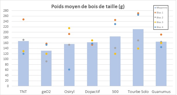 Figure 5 : Effet des activateurs de fertilité du sol sur le poids de bois de taille.