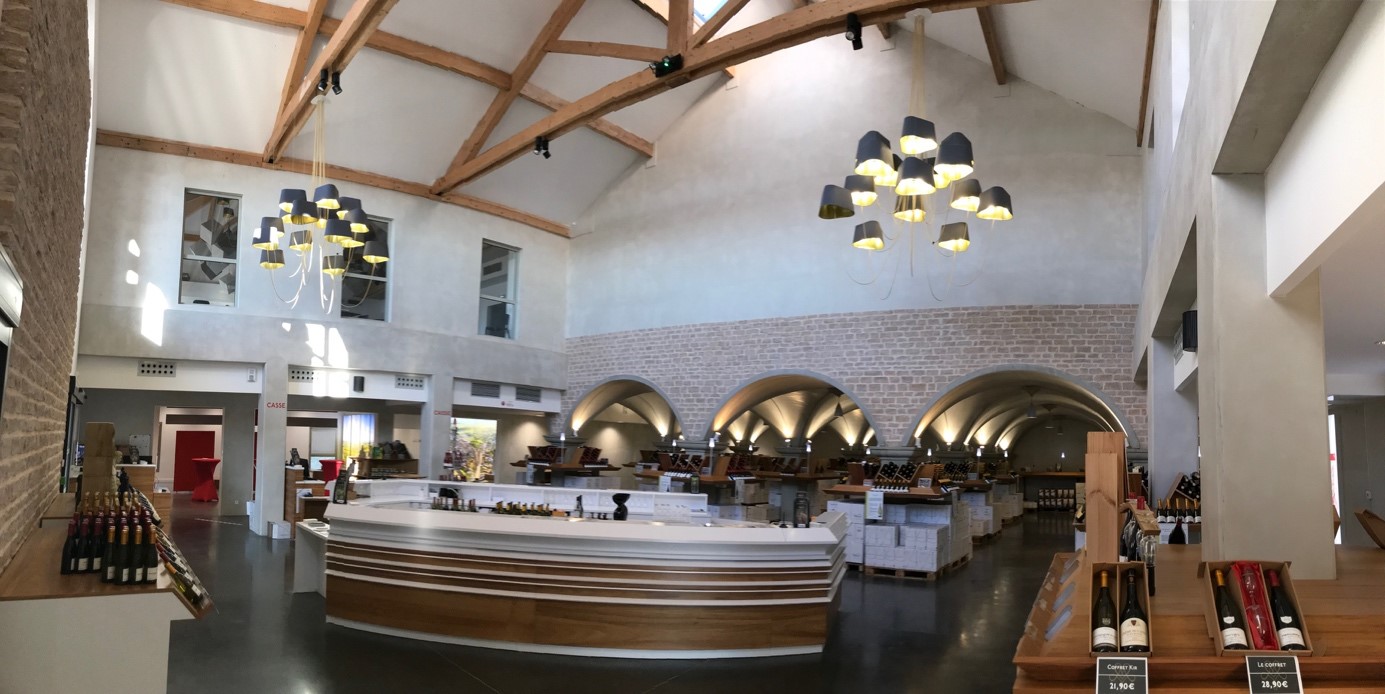 La réorganisation des flux et l’extension de l’atelier de mise en bouteille a préalablement induit la construction d’un nouvel espace oenotouristique, caveau de vente et accueil séminaires (ci-dessous), également conçu et réalisé par Ingévin.