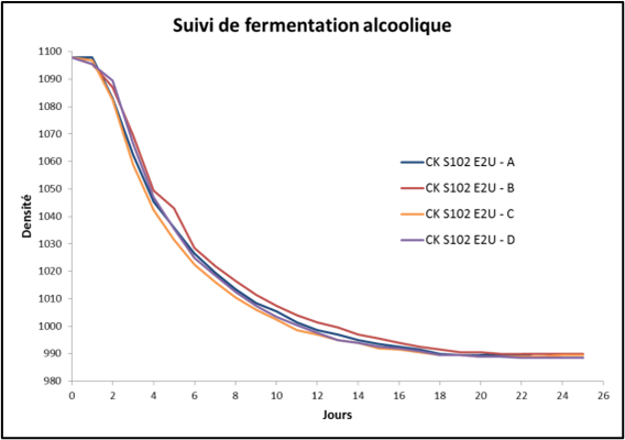 Essai réalisé par INTELLI’OENO avec la SafŒno™ CK S102, levure idéale pour les vins blancs et rosés de qualité élaborés dans des conditions fermentaires difficiles.