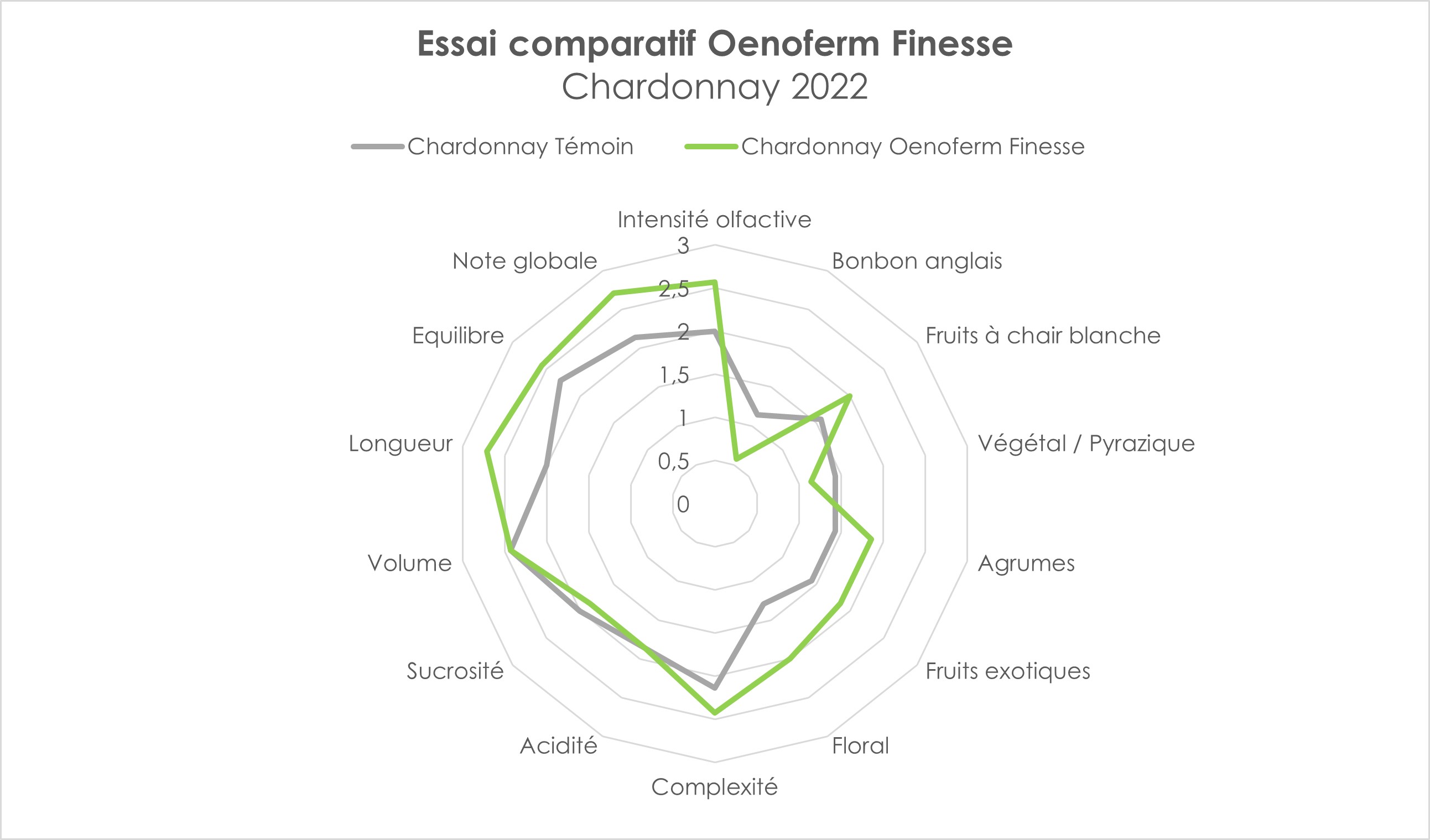 Figure 2: Essai comparatif mené en 2022 sur un mout Chardonnay (Bourgogne) face à une souche commerciale de référence.