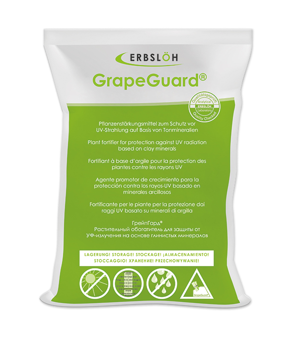 Avec sa faible granulométrie et son fort pouvoir couvrant en pulvérisation, GrapeGuard® est conçu pour former un écran protecteur sur les plantes, conférant ainsi une protection naturelle à la vigne vis-à-vis du rayonnement UV intense, des brûlures solaires et du stress thermique. Après application, l’évapotranspiration du feuillage est réduite et les réserves hydriques sont mieux préservées. Appliqué sur l'ensemble du feuillage et sur les grappes GrapeGuard® protège l'intégralité de la plante, permettant ainsi un échange métabolique lent et régulier.