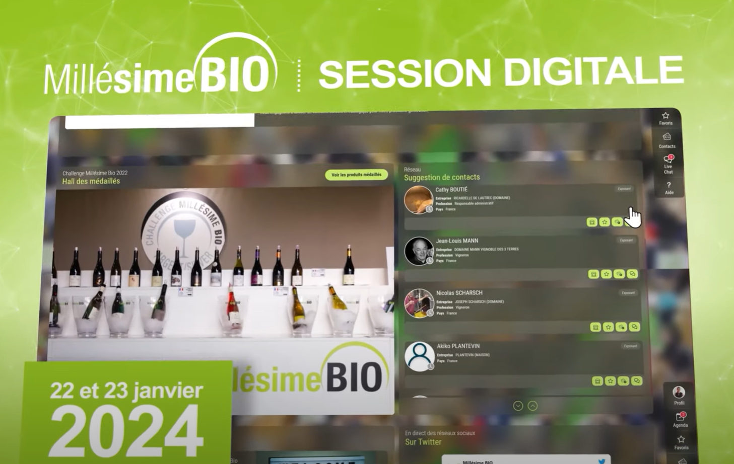 La session digitale a vu le jour en janvier 2021 alors que le salon physique ne pouvait se tenir en raison de la crise sanitaire. Ce salon virtuel spécialement conçu pour répondre aux besoins des participants de Millésime BIO, permet de mettre en relation exposants et acheteurs pendant 2 jours. Plébiscitée par les professionnels qui ont pu y participer, la session digitale est devenue un outil d'intermédiation couplé avec le salon physique. Chaque année, les participants peuvent donc débuter des échanges une semaine avant le salon physique en vue de préparer ou d'affiner leur rendez-vous.