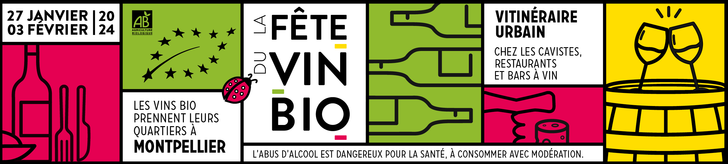Nous sommes heureux de vous présenter la 1ère édition de La Fête du Vin Bio, une animation commerciale organisée dans la métropole Montpellieraine et destinée au grand public ! Durant cette semaine de fête, les amateurs de vins pourront partir à la découverte des vins bio en se rendant chez nos établissements partenaires : restaurants, cavistes, bars à vins, épiceries fines, etc… Cumulez 3 visites dans les établissements partenaires et gagnez une surprise bio à récupérer à l’Office du Tourisme de Montpellier !