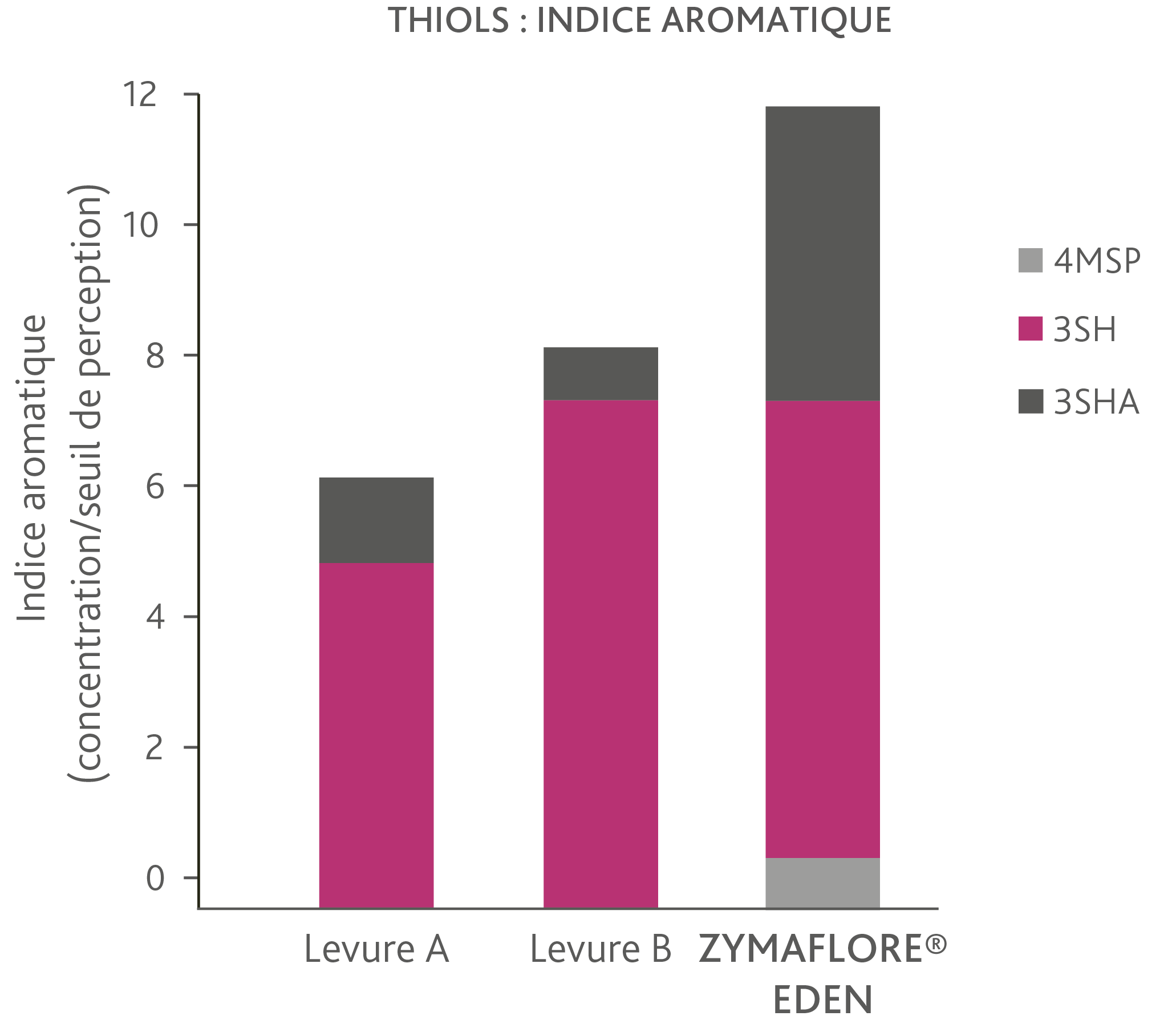 Par rapport aux références du marché, ZYMAFLORE® EDEN favorise l'expression aromatique de fruits, d'épices et de fleurs et apporte une souplesse en bouche.