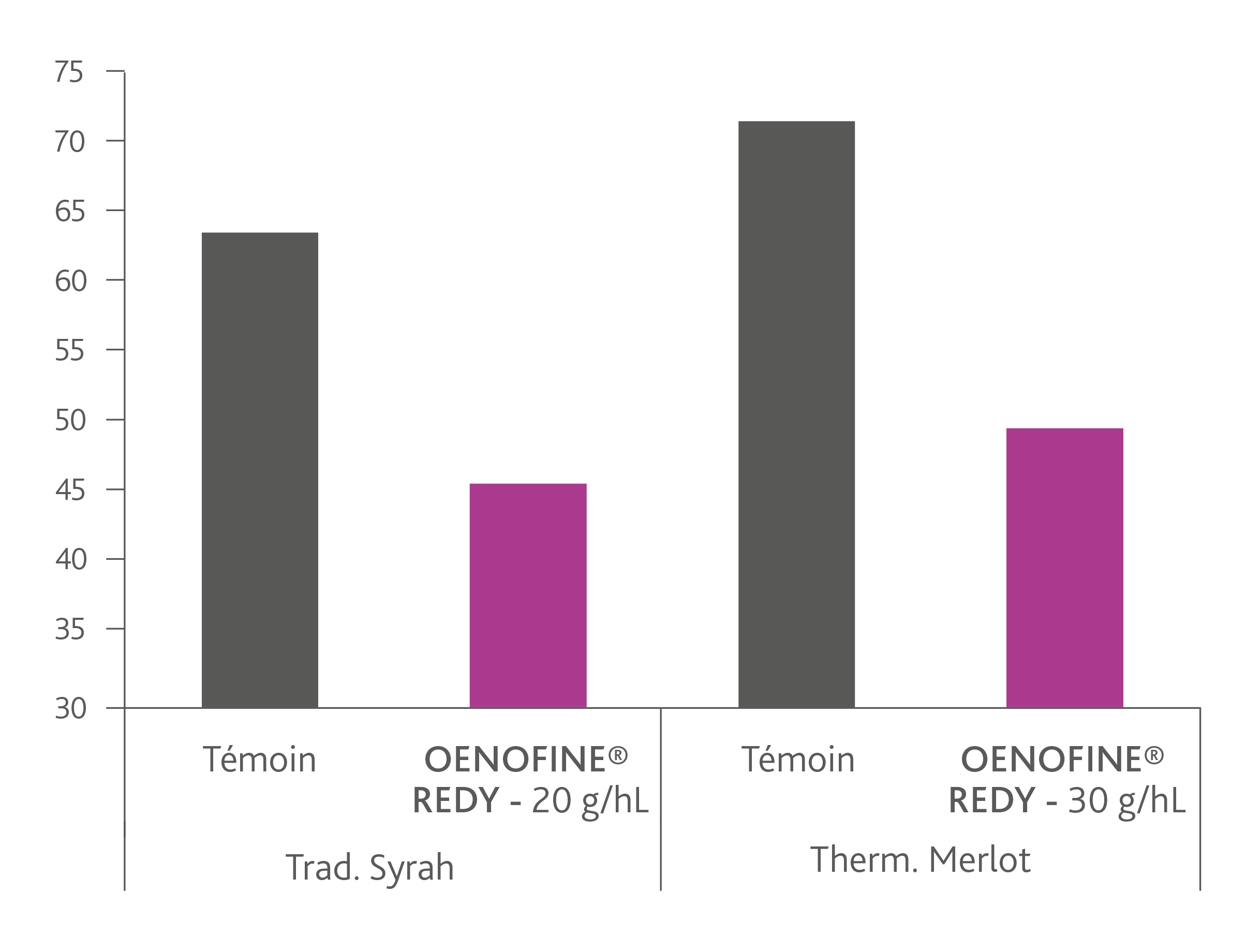 L'intégration d'OENOFINE® REDY, dès le stade de fermentation du moût se traduit par la formation rapide de complexes polysaccharides-polyphénols moins réactifs, donc plus souples, et permet d'obtenir des vins rouges caractérisés par une couleur nette et plus intense, ainsi qu'une clarification améliorée.