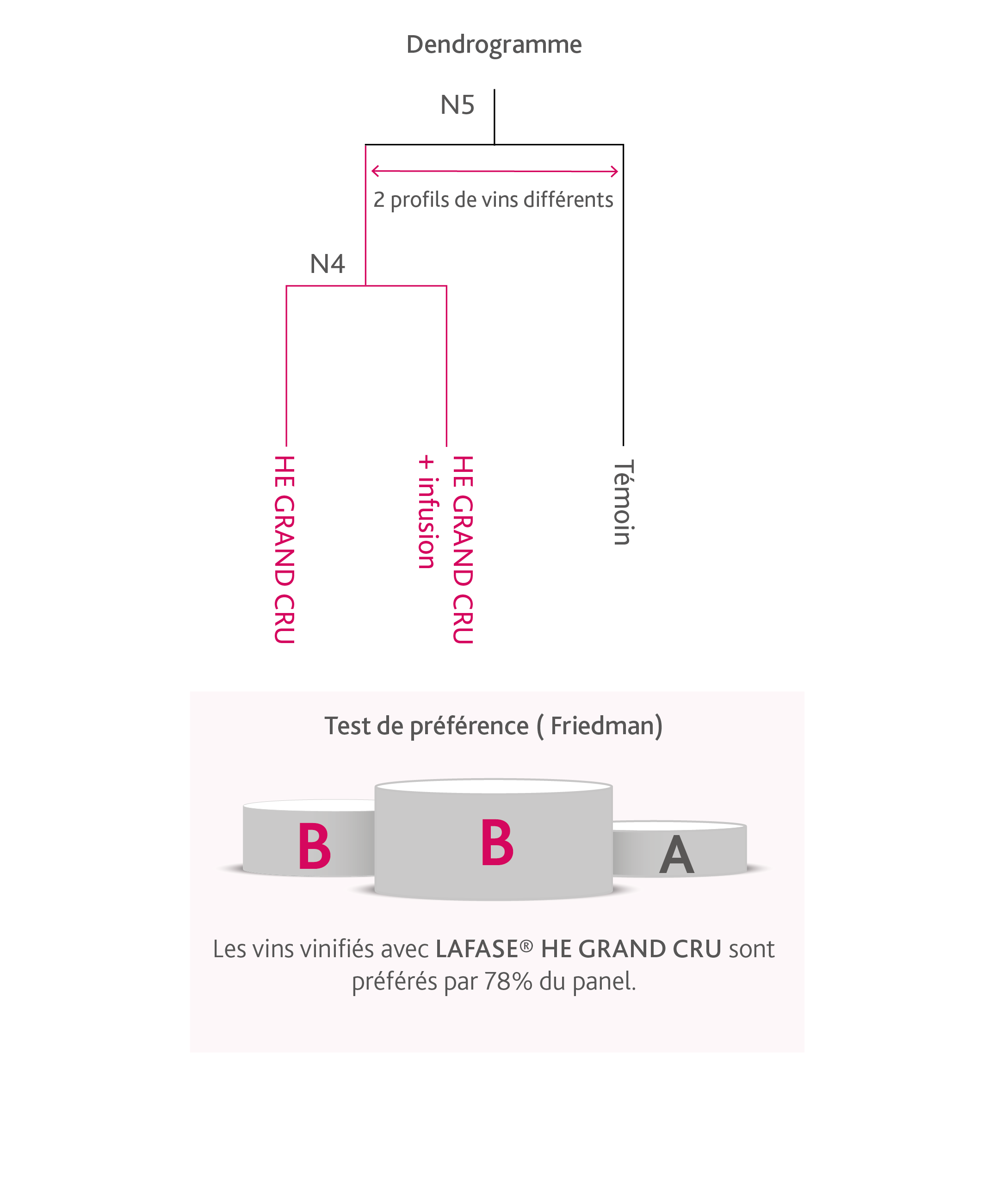 L’illustration ci-dessous montre statistiquement l’impact de LAFASE® HE GRAND CRU en macération, permettant d'obtenir un profil de vin distinct avec une amélioration globale de ses qualités organoleptiques.