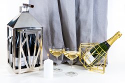 Eté comme hiver, craquez pour cette lanterne en métal pouvant accueillir 4 bouteilles ainsi qu’une bougie (incluse).