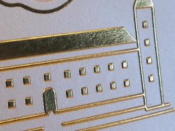 La dorure galbée est adapté aux papiers structures et très épais. Elle donne du relief, un côté tactile très intéressant.